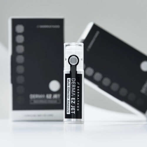 Produktabbildung der DERMA EZ JET Multi Effector Ampoule von Dermafood mit schwarzer Verpackung und modernem Design.